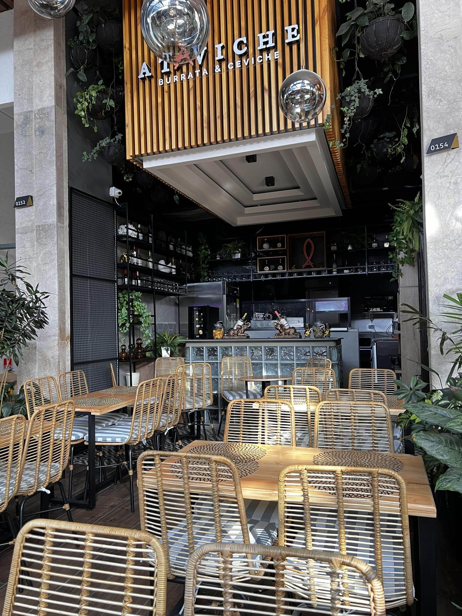 Shops neighboring the sushi bar also embrace the same aesthetic, with eco-conscious boutiques and spaces that incorporate natural elements like wood, stone, and plants. The collaboration between AV Design Studio and MV Arquitectura ensures a cohesive design, blending nature and contemporary style in a way that enhances the shopping experience in this vibrant part of Medellín.